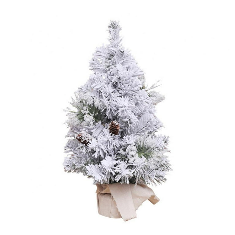 Pre Lit Artificial Mini Christmas Tree 16 Inch Snow Flocked Artificial Pine Xmas Tree 63 Branch Tips Desktop Christmas Tree Burlap Base Walmart Com
